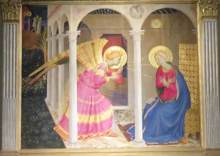 Museo Diocesano: Annunciation by Beato Angelico from S. Domenico (in the upper left side the painter depicted the Expulsion from the Garden of Eden)