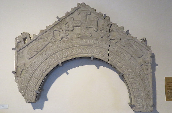 MAEC - Museo dell'Accademia Etrusca e della città di Cortona: fragment of the canopy from the old cathedral of S. Vincenzo with the inscription "temporibus domini Carulo imperatori Ido presbiter fieri feci pro amore Dei et sancti Vincentii"