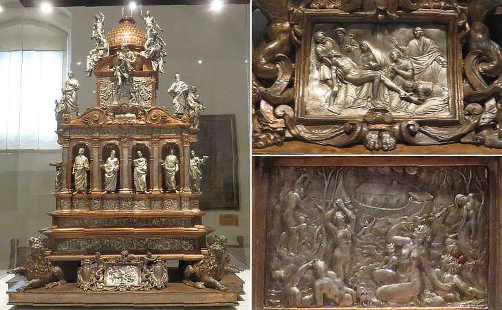 MAEC: (left) Reliquiario della Santa Croce (Holy Cross) from S. Francesco (1507-1685); (right-above) Deposition; (right-below) Noah's Ark