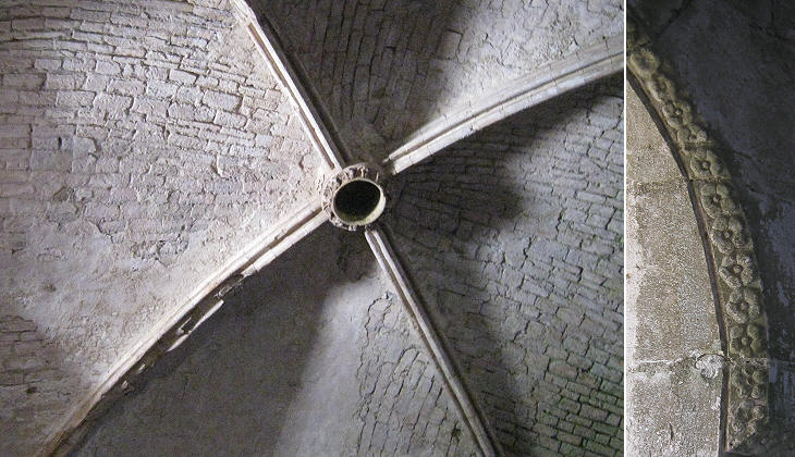 (left) Entrance to the Salle des Chevaliers (Hall of the Knights); (right) former chapel which was turned into a mosque