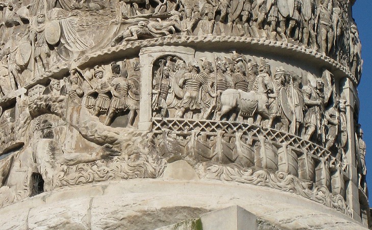Colonna Antonina: the Roman legions led by Emperor Marcus Aurelius cross the River Danube at Carnuntum