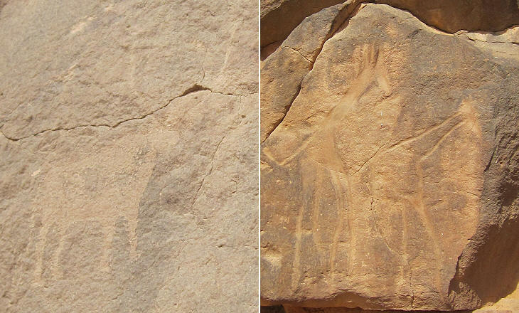 Some carvings or additions to existing carvings belong to more recent times; unfortunately representations of human beings were added in recent years, perhaps with the objective of making the carvings more interesting; Uadi Mathendush is protected only by its remoteness and vandals (or just fools) exist everywhere.