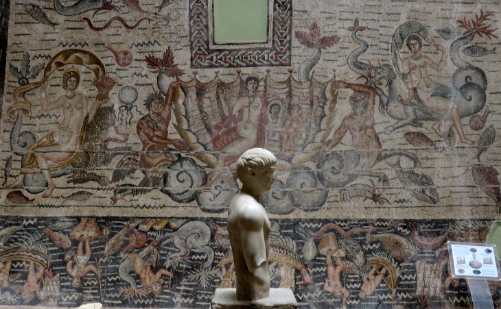 French archaeologists detached a series of large mosaics which they found in private houses and placed them in a museum, which however did not have enough room for all the other findings, including the gigantic heads of Emperor Septimius Severus and his wife Julia Domna. They are therefore placed in a courtyard outside the building and in the adjoining garden.