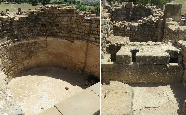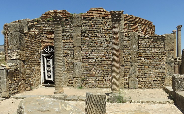 The existence of a Christian community at Cuicul is attested from the middle of the IIIrd century. In the first years of the Vth century the Christians built a cluster of episcopal edifices at the top of the hill. Two basilicas were placed next to each other. Nearby was a round baptistery, as well as a bishop's mansion and a complicated group of annexes. This complex of buildings is the first which is seen when entering the archaeological site.