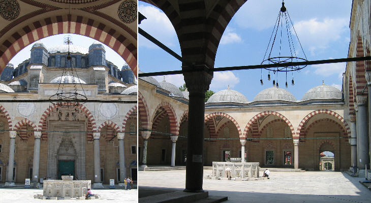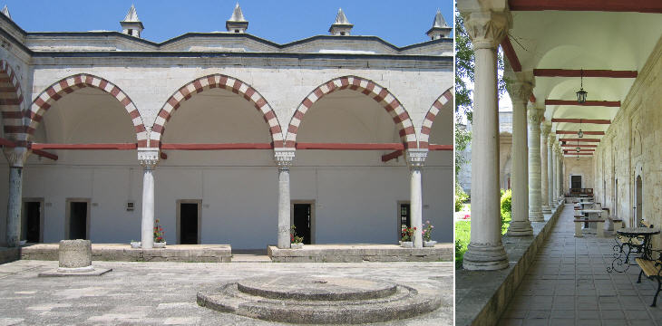 Ikinci Beyazit Kulliye - courtyards of medrese (left) and darussifa (right)