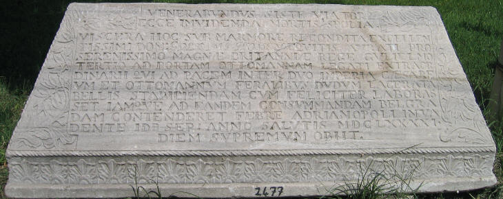 The inscription starts with the words siste viator (passer-by stop and watch), the incipit Ancient Romans usually placed on their funerary monuments.