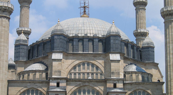 The building of large domes was his key challenge; the dome of Selimiye Camii is supported by eight pillars coming out of a square structure. Four half domes turn this structure into an octagon.