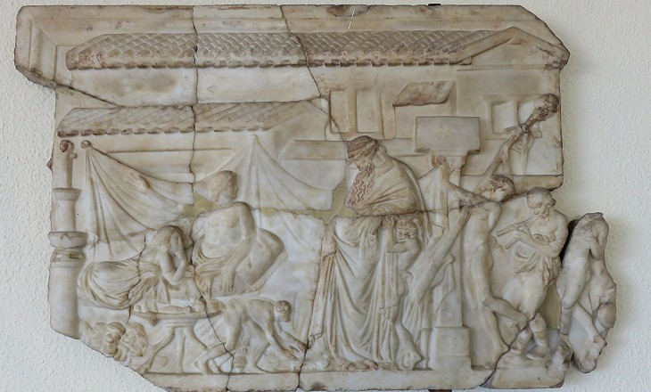 Archaeological Museum of Izmir: relief portraying Dionysus visiting Ikarios (from Ephesus)