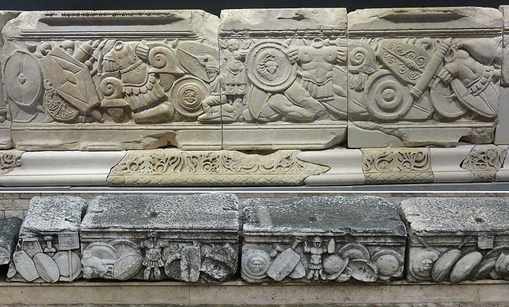 (above) Frieze from the Temple to the Emperors; (below) a similar frieze in the garden of the museum