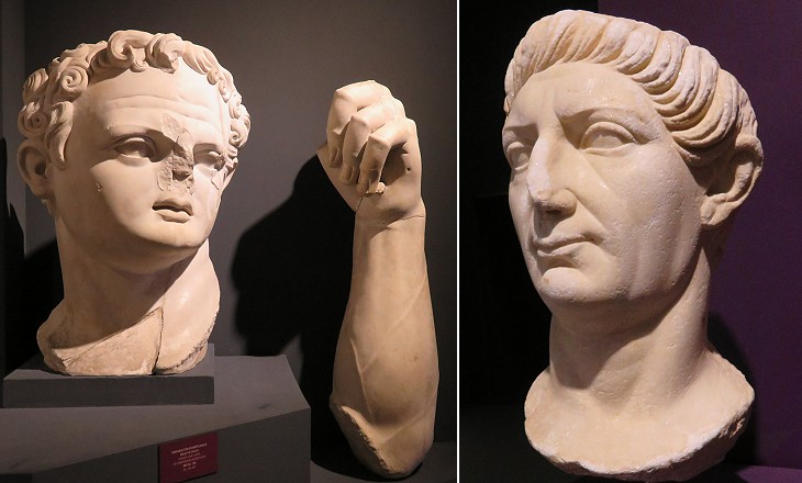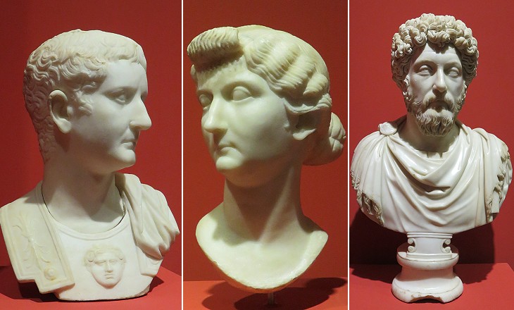 (centre) Livia, Emperor Augustus' third wife; (right) Marcus Aurelius