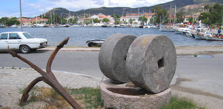 Phocaea, the ancient name of the town, played an important role in the diffusion of a more effective equipment to squeeze the olives in order to obtain their oil. It was made up of three heavy wheels, two of which rotated on the third one. Its inhabitants were also skilful seamen and they founded several colonies in the western Mediterranean Sea including Marseille, today the main French port.
