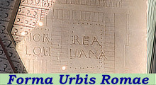 The ancient map was affixed to a wall of Tempio della Pace and it had an east-up orientation (this orientation was used well into the XVIIIth century, e.g. in the 1781 Map of Rome by Giuseppe Vasi). The plan measured approximately 13 m in height and 18 in width. The carvings which showed walls, columns and other architectonic features were uniform in depth. That made rather difficult to observe what was depicted in its upper part. In the new museum the fragments are placed on the floor, so that all their details can be clearly seen. This page shows some of the most interesting ones.