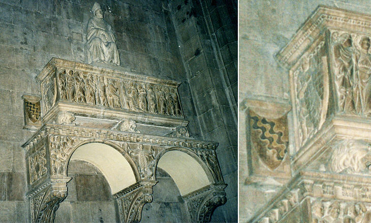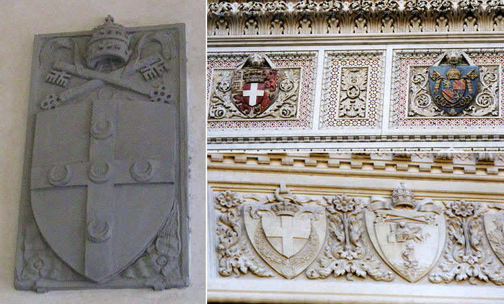 Papal coats of arms: (left) Gregory XII and the cardinals loyal to him (in the Cathedral); in 1407, during the Great Schism, he fled
