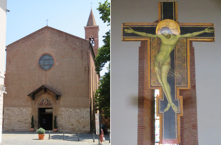 Grosseto was a bishopric see, but the population of its diocese was very small. Among the great orders only the Franciscans built a convent in town. In line with their tradition the church had a very simple façade. The large painted Crucifix is traditionally attributed to Duccio di Boninsegna who is considered the "father of Sienese painting".