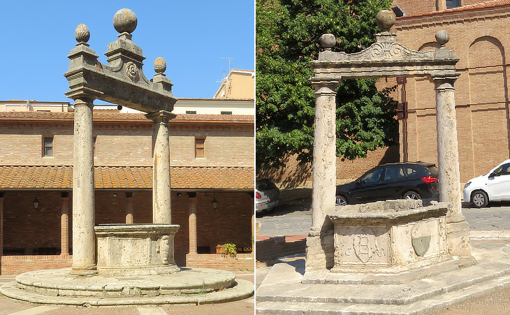 Grosseto did not have public fountains and the inhabitants had to dig wells to access groundwater. The 1465 well was decorated with the Siena black and white shield and the ladder of the Malavolti, a leading family of Siena. Even though the wells had a very utilitarian purpose they were designed to please the eye.