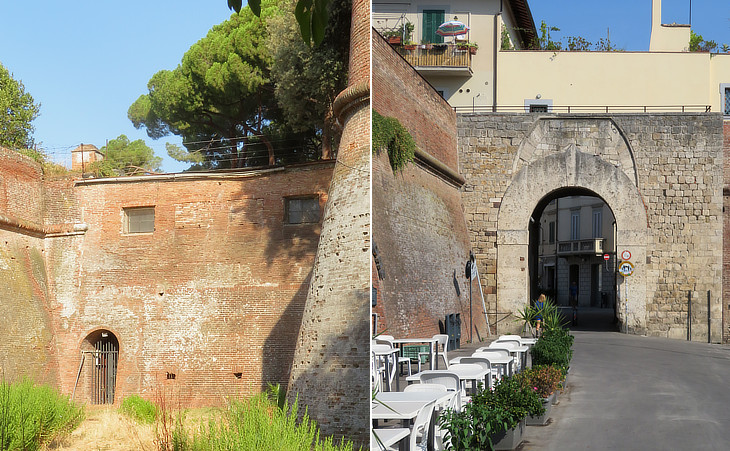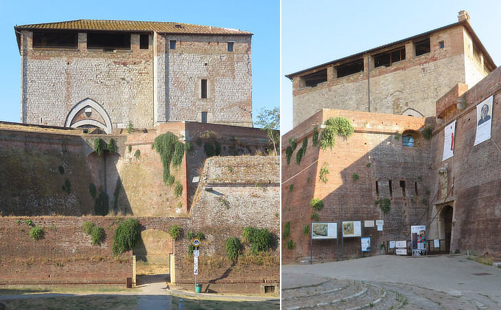 (left) Cassero Senese; (right) entrance to Rocca Medicea