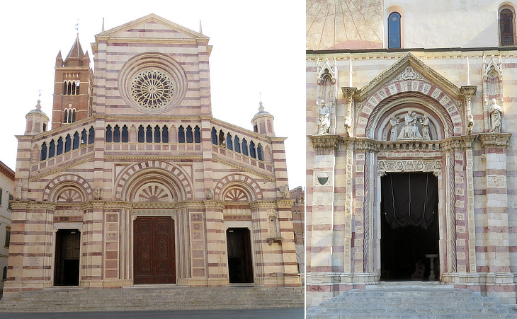 Cathedral (S. Lorenzo): (left) façade; (right) side portal
