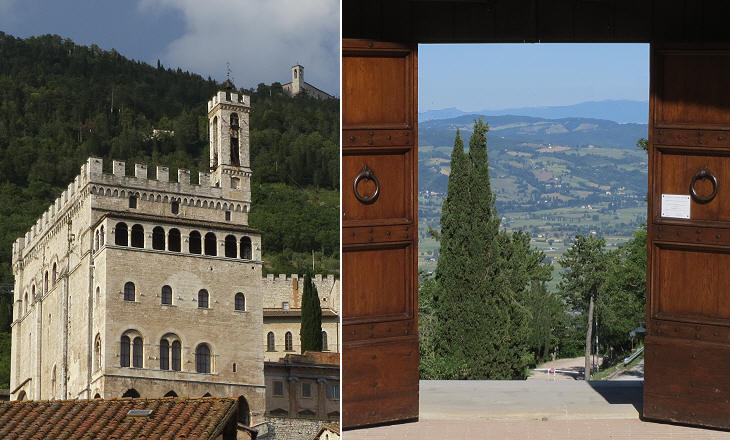 (left) Palazzo dei Consoli and S. Ubaldo at the top of the hill; (right) a rewarding view from S. Ubaldo