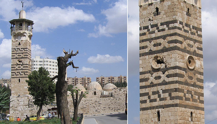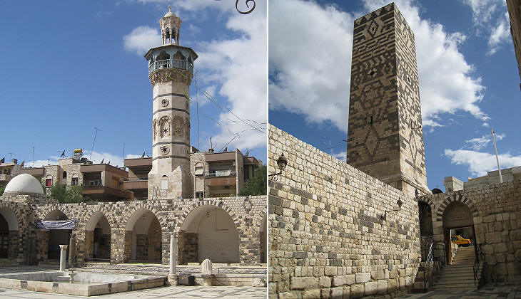 The mosque has been reconstructed in line with its original design; the older minaret has the appearance of a stout tower and it is thought to have been built in the XIIth century making use of a previous minaret; in 1427 the Mameluke built a second minaret, very similar to other minarets in Aleppo.