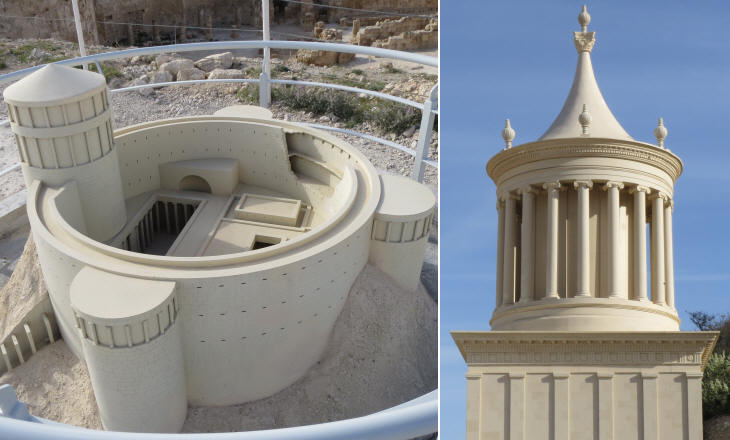 In May 2007 Professor Ehud Netzer reported the discovery of the base of a mausoleum. Its model is therefore hypothetical and is based on other ancient mausoleums such as the tombs in the Kidron Valley outside Jerusalem.