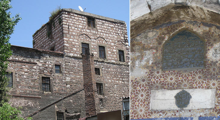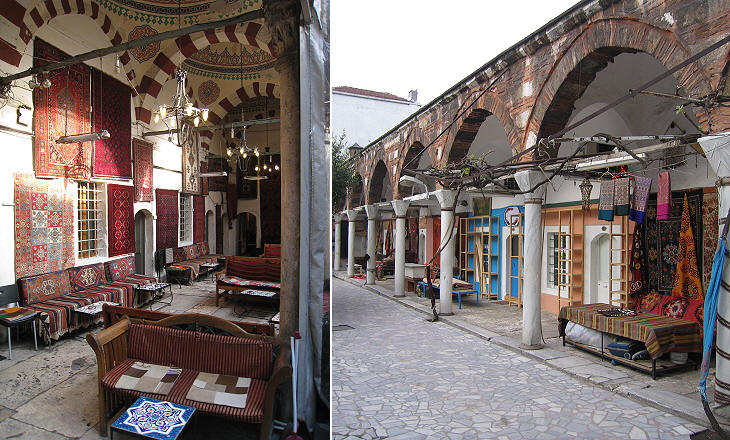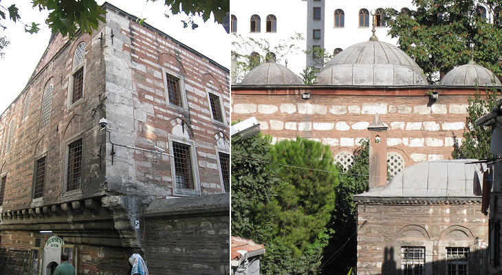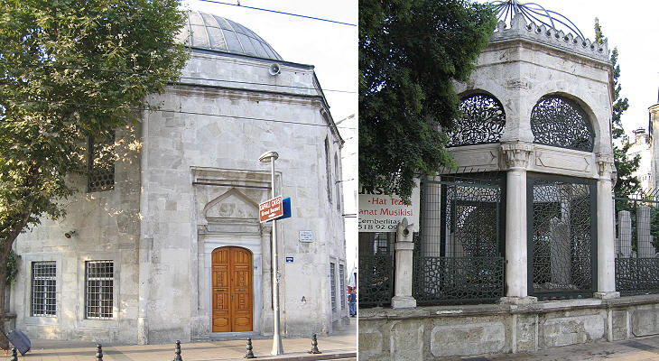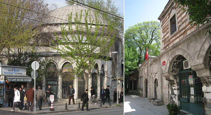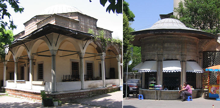 (left) Kara Mustafa Turbesi; (right) Amcazade Kulliyesi: shops near the entrance