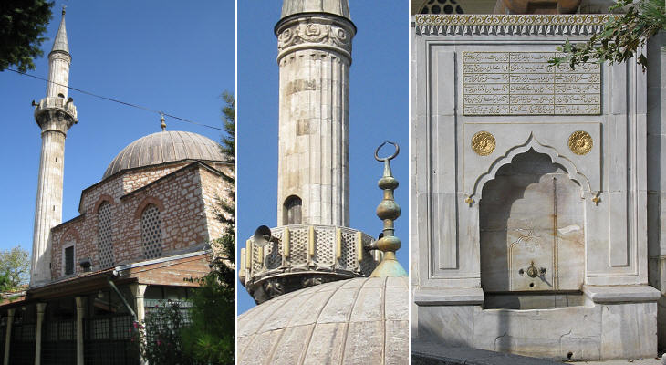 (left/centre) Cinili Cami (1640) at Uskudar; (right) a fountain at Uskudar