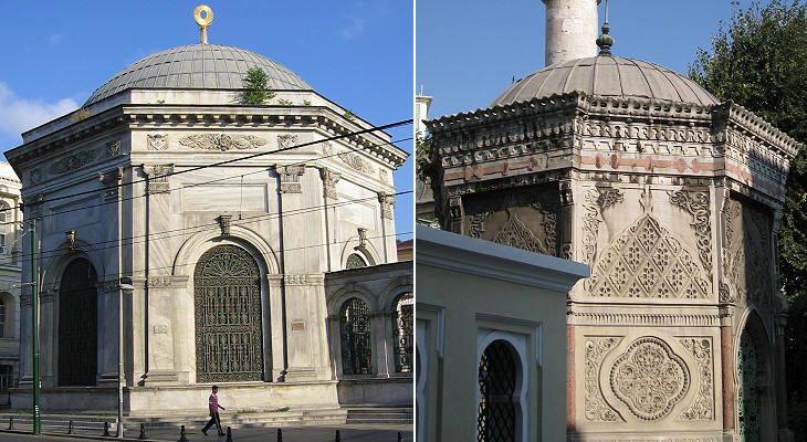 (left) Sultan Mahmut II Turbesi; (right) Fuad Pacha Camii