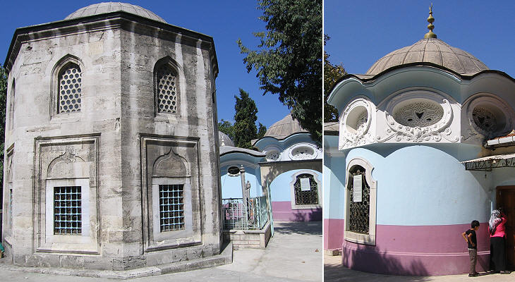 Eyup Camii: (left) gateway; (right) the mosque and the tomb of Eyup