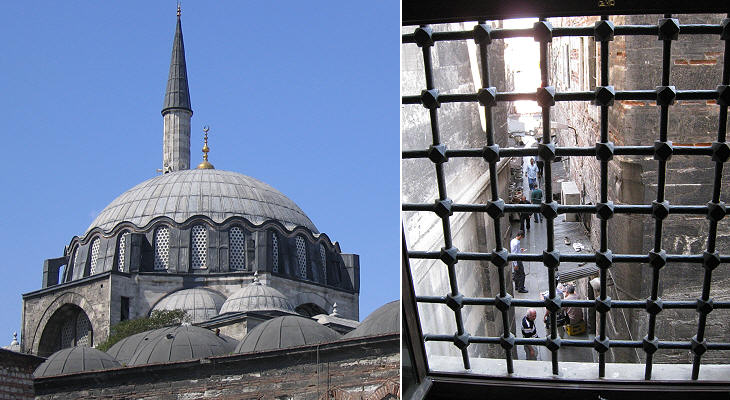 Rustem Pacha Camii (1562): (left) dome; (right) street below the mosque