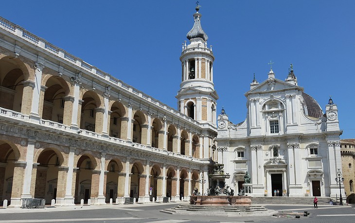 Western entrance to Piazza della Madonna, the main square of Loreto