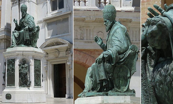 The statue was paid for by the eight cardinals from the Marches created by the Pope during the five years of his pontificate.