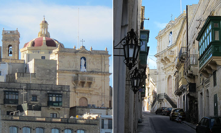 St. Philip Neri: (left) seen from Fort S. Angelo; (right) from the street leading to the tip of the peninsula