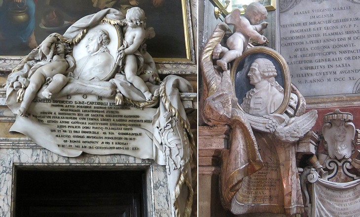 Monuments by Pietro Bracci: (left) to Cardinal Fabrizio Paolucci in S. Marcello al Corso; (right) to Cardinal Leopoldo Calcagnini (1746-48) in S. Andrea delle Fratte