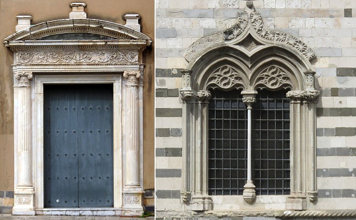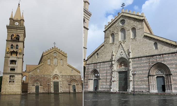 The use of black lavic stones is a reminder of the proximity of Mount Etna. It can be noted in monuments of Taormina and Milazzo as well.