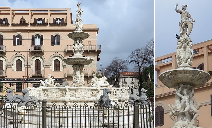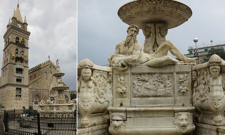 Quattro Fontane: (left/centre) the two fountains in town; (right) one of the other two fountains at Museo Regionale di Messina