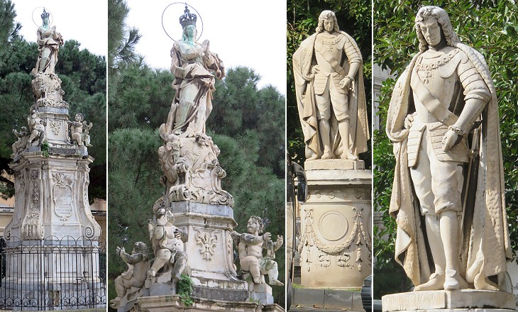 (left) Monumento all'Immacolata; (right) Monument to Charles of Bourbon by Saro Zagari, a local sculptor