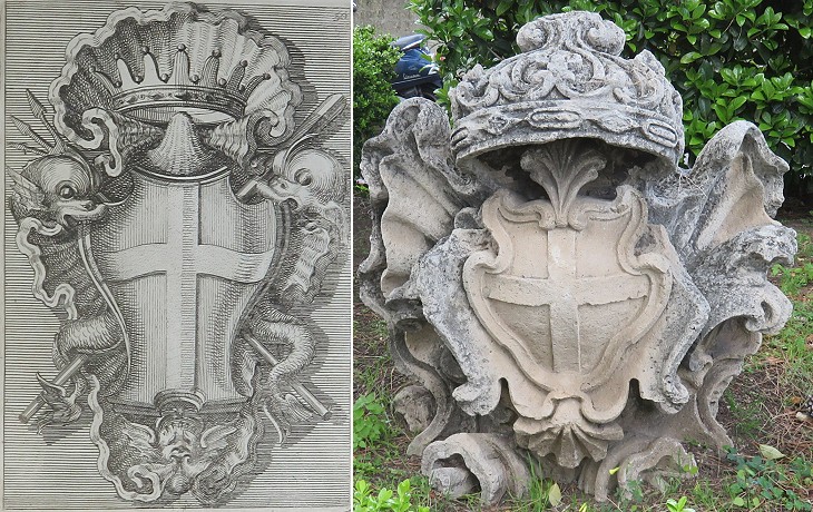 Juvarra spent some years in Rome where in 1711 he published a fifty-page book of plates depicting coats of arms of the Popes by Michelangelo, Bernini, Borromini and other famous architects. He closed the book with a (lost) coat of arms of his hometown which was located in the harbour.