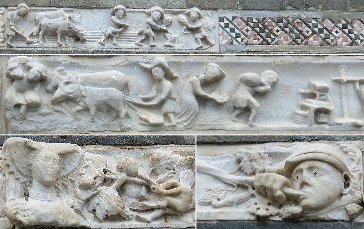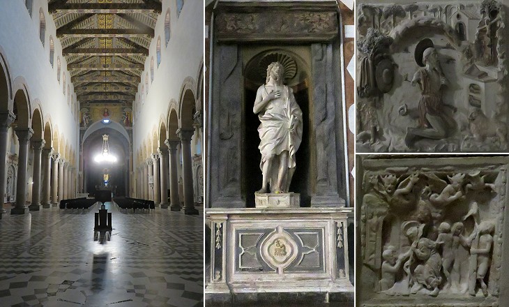 The Cathedral was severely damaged also by the 1908 earthquake and by the 1943 Allied bombing of the town. The reconstruction emphasized the medieval aspect of the church. Elements of its decoration were recovered including a long frieze depicting farming scenes. It is attributed to Antonio Baboccio da Piperno (1351-1435) who is mainly known for his works in Naples.
