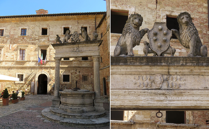 Piazza Grande: well with the Medici coat of arms, two lions, symbols of Florence and two small griffins, symbols of Montepulciano; it is attributed to Sangallo the Elder