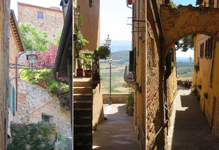 Lord Hovenden crossed the town through the high street from the southern higher end to the northern lower one. The "corso", a name which is used in many Italian towns to indicate the high street (after Via del Corso in Rome), at Montepulciano is divided into three legs: Via di Gracciano nel Corso, Via di Voltaia nel Corso and Via dell'Opio nel Corso, starting from Porta al Prato and this page describes it in the same order.