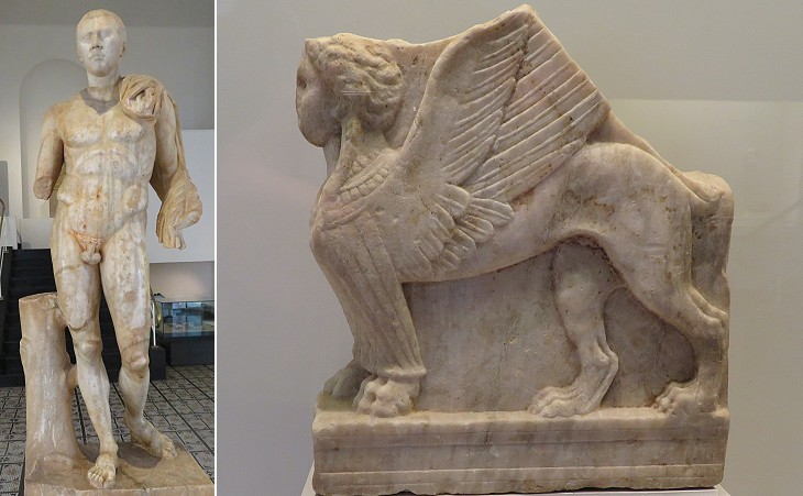 Archaeological Museum of Rabat: (left) statue found at Sala which portrays Ptolemy, the last king of Mauretania; (right) a sphinx, part of a throne, found at Lixus (Ist century BC)