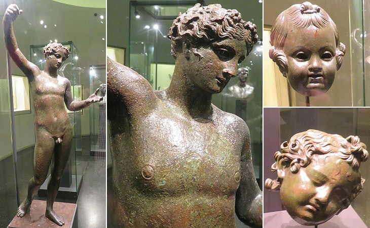 Archaeological Museum of Rabat: bronze exhibits from Volubilis: (left) ephebe pouring drink; (right) two small heads of children