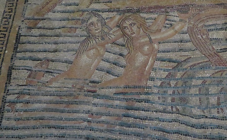 Museum of the Kasbah at Tangier: detail of "Navigium Veneris", a floor mosaic from the House of the Voyage of Venus at Volubilis