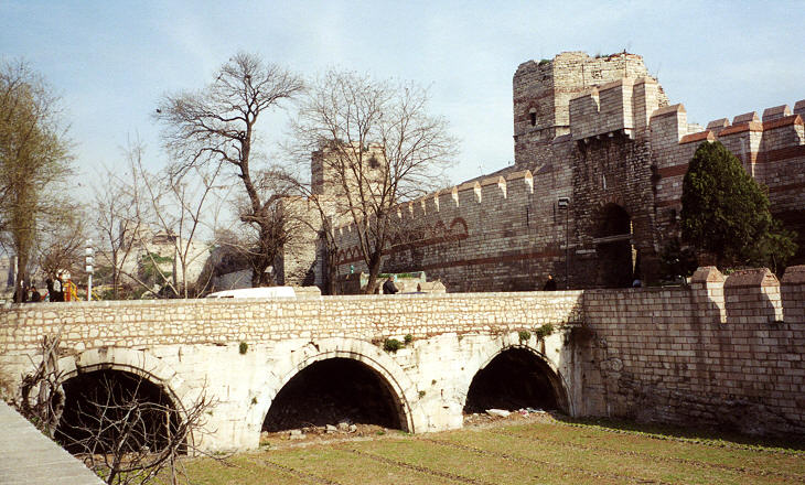 Silivri Kapi shows the complete set up of the walls: moat, outer wall, inner wall. It is associated with a key event in the history of Constantinople. In 1261 a small body of Michael VIII Palaiologos’ Byzantine troops managed to enter the city through a secret passage in this gate which had been left unguarded. Latin Emperor Baldwin II was caught by terror and he fled the city in disguise in a Venetian galley.