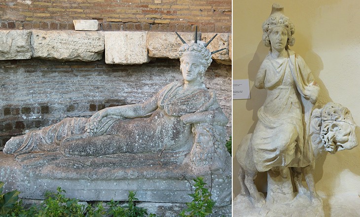 Magna Mother was the name the Romans gave to Cybele, goddess of fertility, who was worshipped on the Anatolian tableland. In Rome she had a temple on the Palatine. At Ostia a large triangular area (Campo della Magna Mater) was dedicated to her. A small temple to the goddess stood at one corner and it could be accessed by following a porch which began at Porta Laurentina.