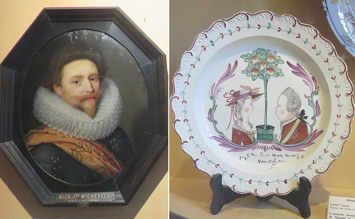 Museum of Orange: Princes of Nassau: (left) Philip William (1584-1618); (right) Leeds faience with a portrait of William III and his wife Mary at the sides of an orange tree (they became King and Queen of England, Scotland and Ireland in 1689)