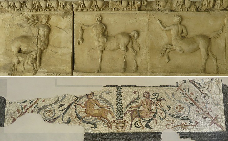 Museum of Orange: frieze (IInd century from the theatre) and mosaic (found in 1995 in the city centre) portraying centaurs
