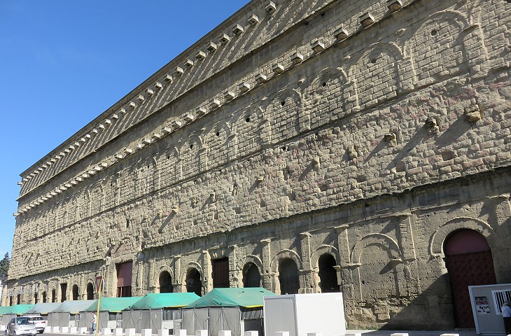 The Roman heritage of Orange is peculiar in the sense that it has two large monuments in a pretty good state of conservation, but almost nothing else. It is likely that the town was no longer a prosperous one during the IInd century AD, a period which elsewhere was characterized by the construction of grand monuments. We know that the individual small farms of the veterans at one point were unable to compete in the marketplace and their owners went bankrupt. Archaeological museums in many towns of Southern France have plenty of coloured floor mosaics, e.g. at Vienne, but this is not the case at Orange.