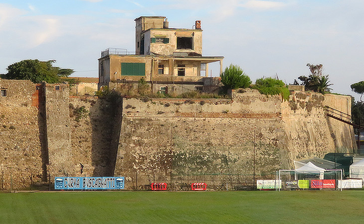 The protection of Orbetello from land attacks was mainly provided by a large pentagonal bastion which stood on the site of previous fortifications built by Siena.