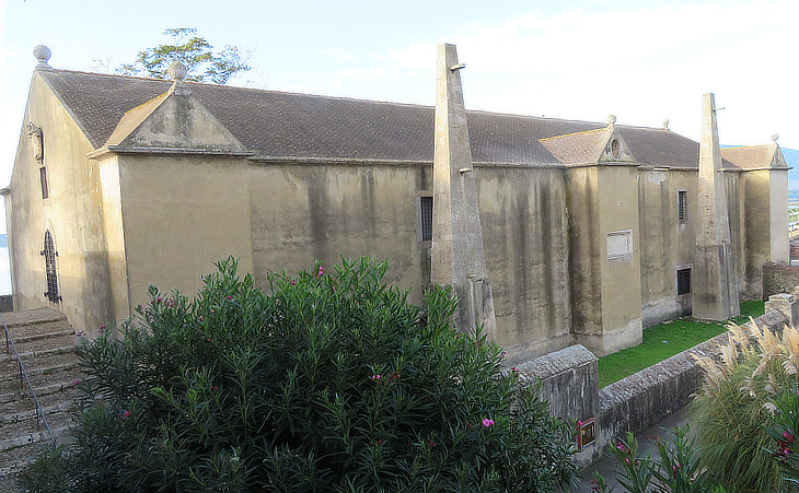 Grunenbergh (aka Guzman) gunpowder magazine (1692); Ferdinand de Grunenbergh was a Flemish military architect who worked also at Borgo on Malta; the four "pyramids" were added in the XIXth century to support lightning rods